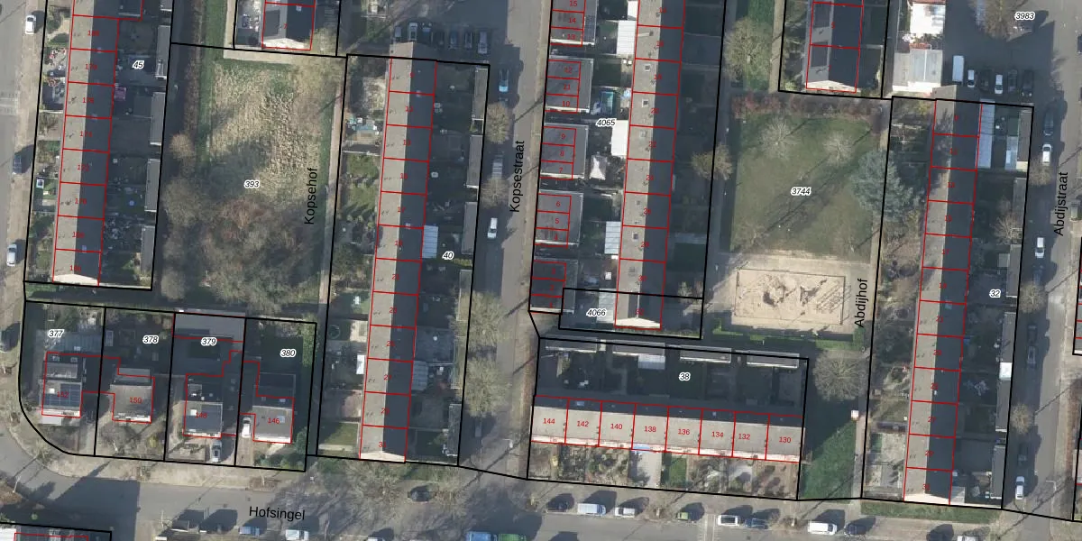 Het perceel waarop Kopsestraat 3 staat heeft een oppervlakte van 2366 m². Dit is een zeer groot perceel. De perceeloppervlakte wordt geregistreerd door het Kadaster. Gedetailleerde informatie over de maten van dit perceel kunt u vinden in het rapport Kadastrale kaart met maatvoering van Kopsestraat 3.