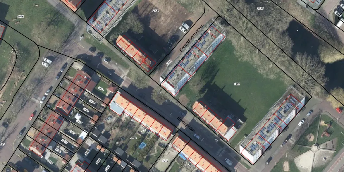 Het perceel waarop Korenbloemstraat 11-3 staat heeft een oppervlakte van 3800 m². Dit is een zeer groot perceel. De perceeloppervlakte wordt geregistreerd door het Kadaster. Gedetailleerde informatie over de maten van dit perceel kunt u vinden in het rapport Kadastrale kaart met maatvoering van Korenbloemstraat 11-3.