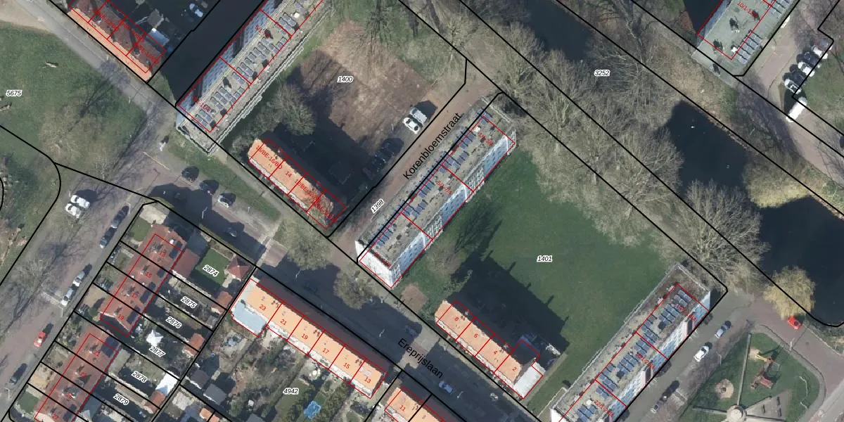 Het perceel waarop Korenbloemstraat 7-2 staat heeft een oppervlakte van 3800 m². Dit is een zeer groot perceel. De perceeloppervlakte wordt geregistreerd door het Kadaster. Gedetailleerde informatie over de maten van dit perceel kunt u vinden in het rapport Kadastrale kaart met maatvoering van Korenbloemstraat 7-2.