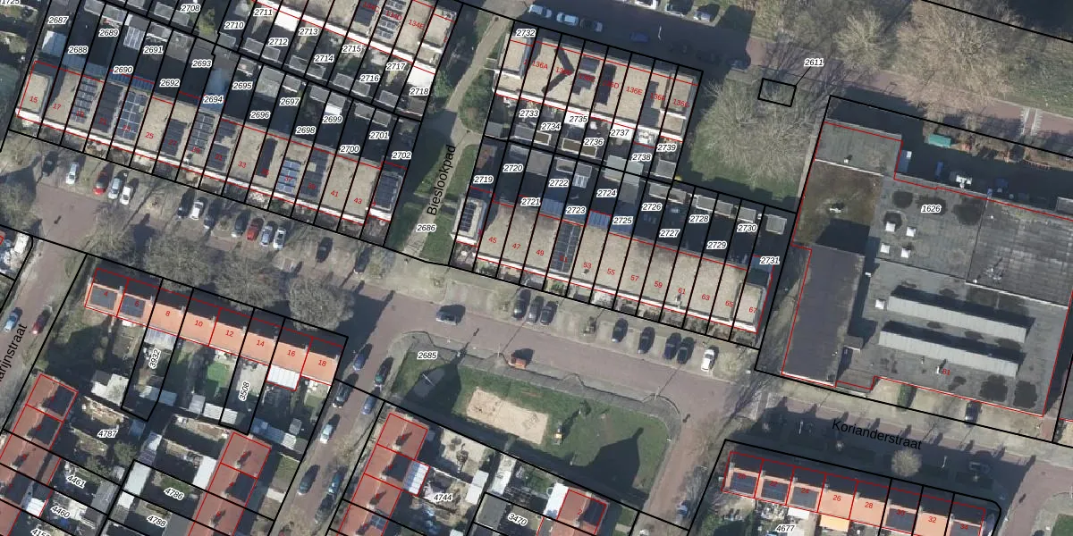 Gebruik de zoekbalk of klik op een perceel voor informatie over de adressen binnen dit perceel.