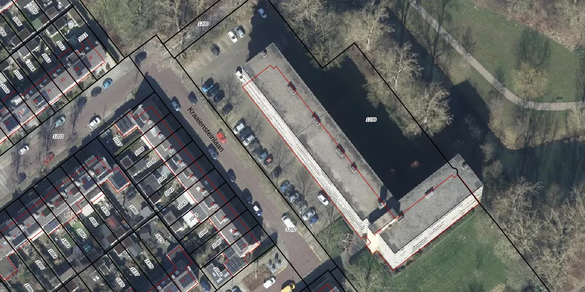Het perceel waarop Kraaiensteinlaan 1-I staat heeft een oppervlakte van 6900 m². Dit is een zeer groot perceel. De perceeloppervlakte wordt geregistreerd door het Kadaster. Gedetailleerde informatie over de maten van dit perceel kunt u vinden in het rapport Kadastrale kaart met maatvoering van Kraaiensteinlaan 1-I.