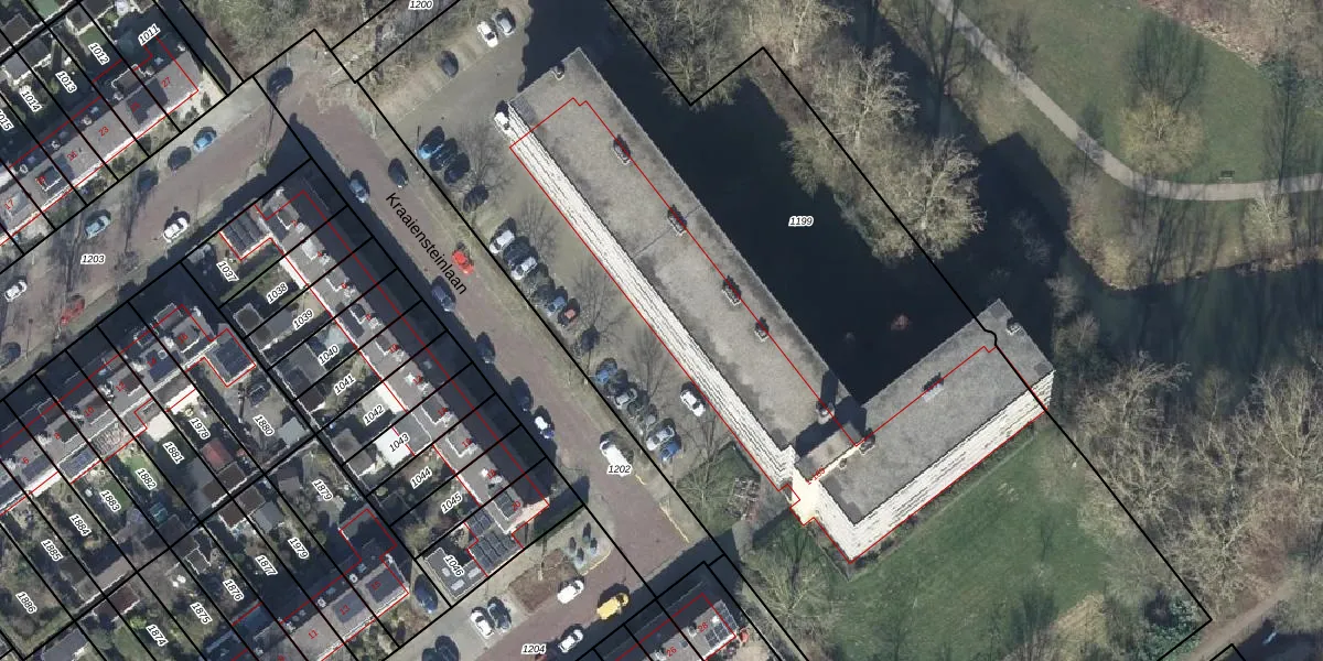 Het perceel waarop Kraaiensteinlaan 1-L staat heeft een oppervlakte van 6900 m². Dit is een zeer groot perceel. De perceeloppervlakte wordt geregistreerd door het Kadaster. Gedetailleerde informatie over de maten van dit perceel kunt u vinden in het rapport Kadastrale kaart met maatvoering van Kraaiensteinlaan 1-L.