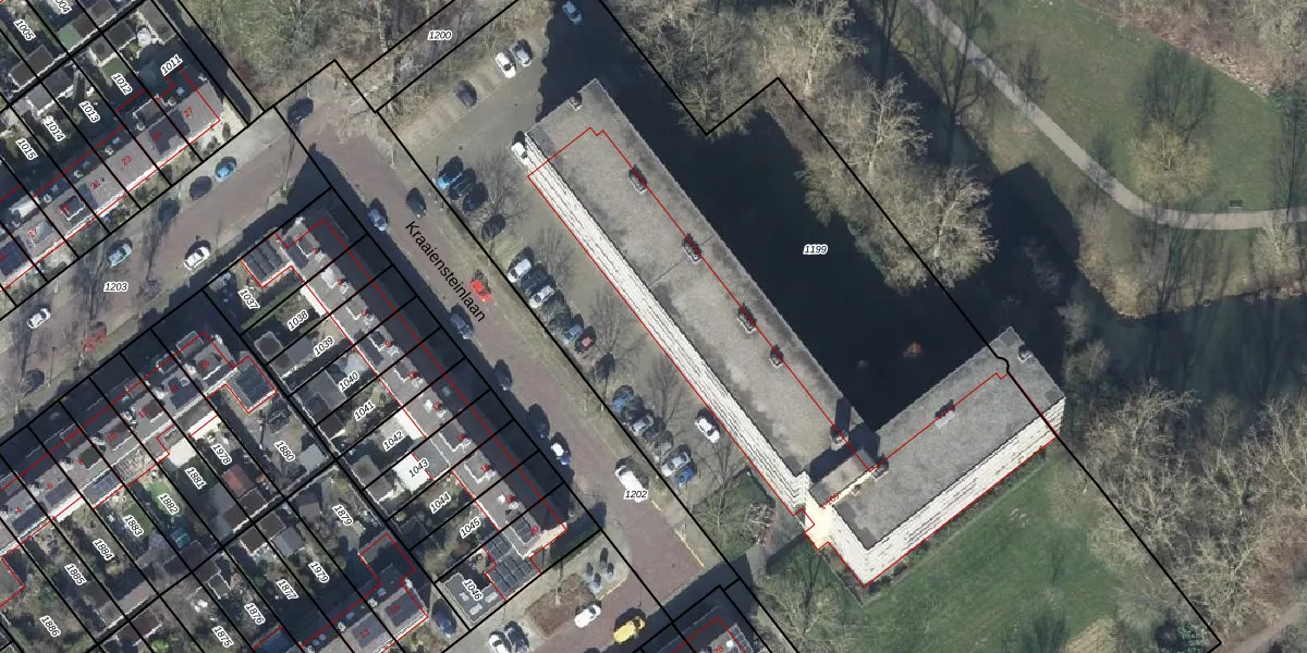 Het perceel waarop Kraaiensteinlaan 1-J staat heeft een oppervlakte van 6900 m². Dit is een zeer groot perceel. De perceeloppervlakte wordt geregistreerd door het Kadaster. Gedetailleerde informatie over de maten van dit perceel kunt u vinden in het rapport Kadastrale kaart met maatvoering van Kraaiensteinlaan 1-J.