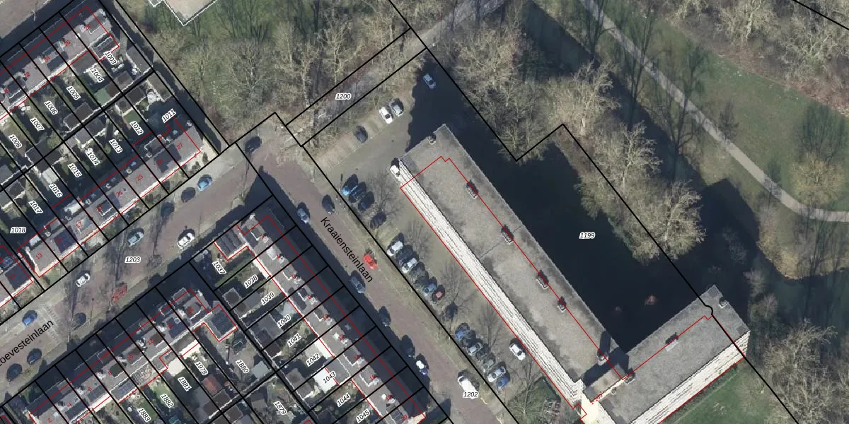 Het perceel waarop Kraaiensteinlaan 1-C staat heeft een oppervlakte van 6900 m². Dit is een zeer groot perceel. De perceeloppervlakte wordt geregistreerd door het Kadaster. Gedetailleerde informatie over de maten van dit perceel kunt u vinden in het rapport Kadastrale kaart met maatvoering van Kraaiensteinlaan 1-C.