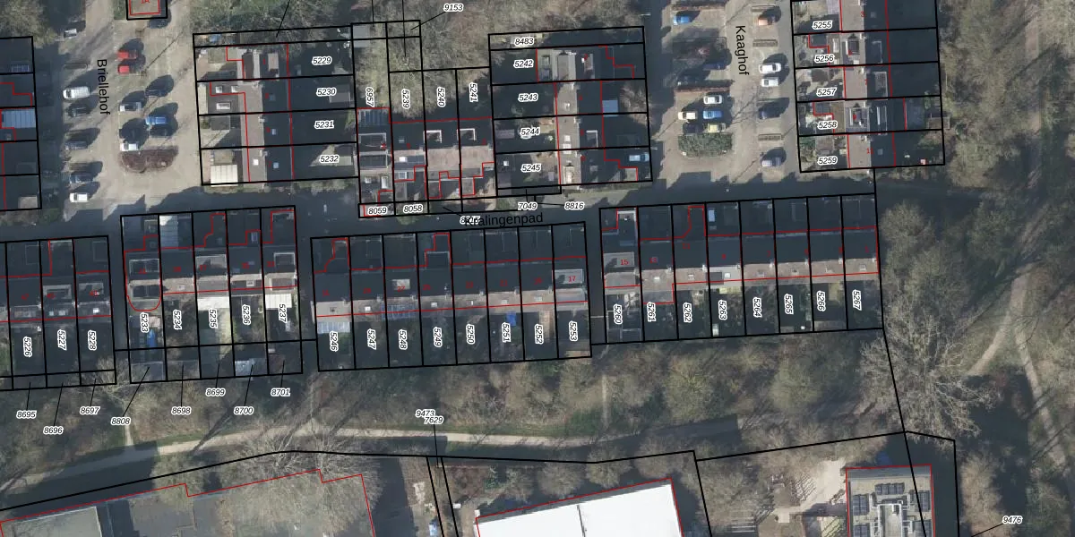 Het perceel waarop Kralingenpad 19 staat heeft een oppervlakte van 157 m². Dit is een middelgroot perceel. De perceeloppervlakte wordt geregistreerd door het Kadaster. Gedetailleerde informatie over de maten van dit perceel kunt u vinden in het rapport Kadastrale kaart met maatvoering van Kralingenpad 19.