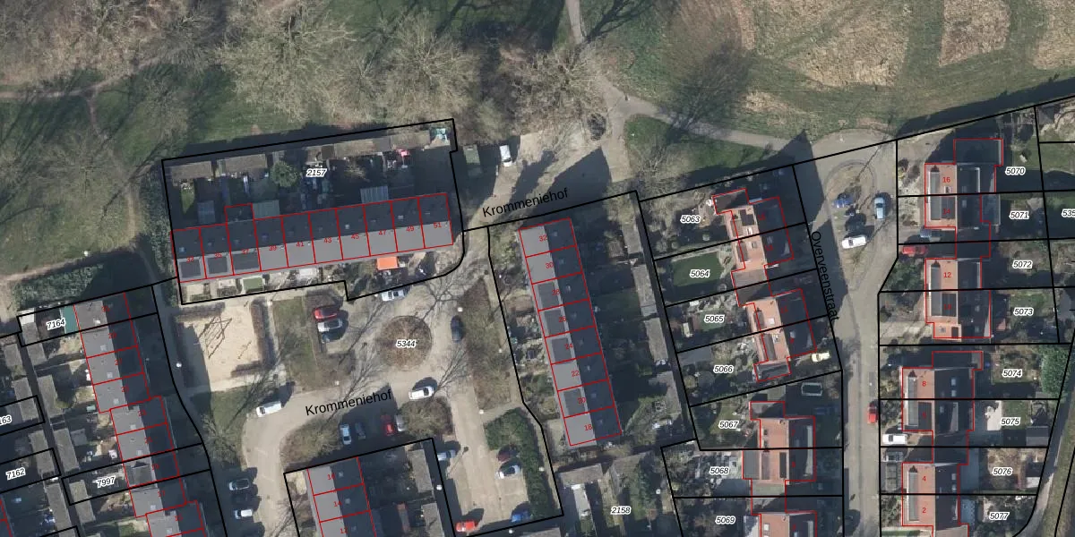 Het perceel waarop Krommeniehof 30 staat heeft een oppervlakte van 3780 m². Dit is een zeer groot perceel. De perceeloppervlakte wordt geregistreerd door het Kadaster. Gedetailleerde informatie over de maten van dit perceel kunt u vinden in het rapport Kadastrale kaart met maatvoering van Krommeniehof 30.