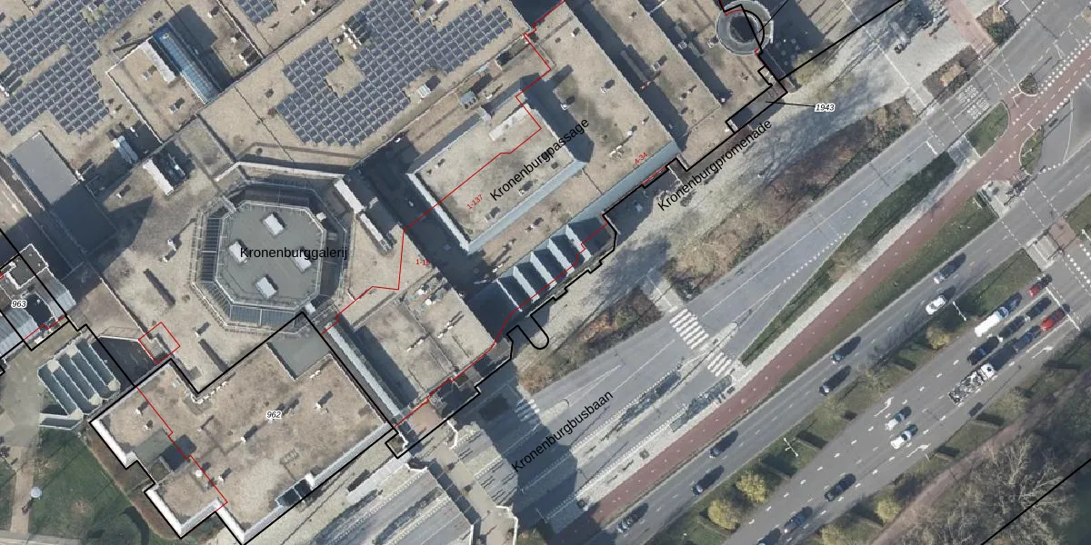 Het perceel waarop Kronenburgpromenade 20 staat heeft een oppervlakte van 3,4 ha. Dit is een zeer groot perceel. De perceeloppervlakte wordt geregistreerd door het Kadaster. Gedetailleerde informatie over de maten van dit perceel kunt u vinden in het rapport Kadastrale kaart met maatvoering van Kronenburgpromenade 20.