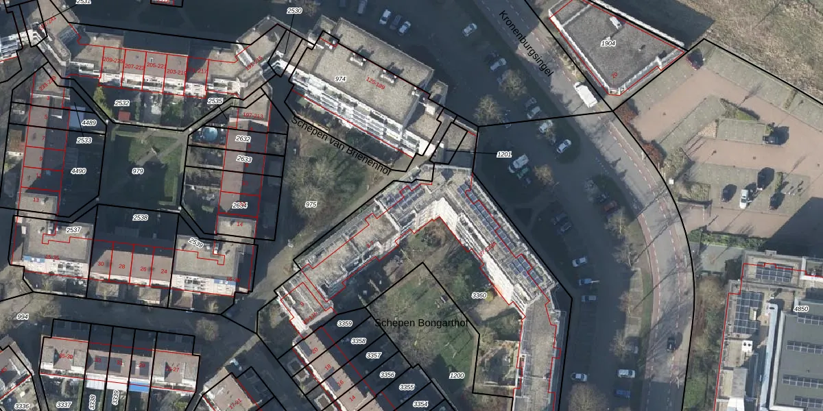 Het perceel waarop Kronenburgsingel 123 staat heeft een oppervlakte van 2604 m². Dit is een zeer groot perceel. De perceeloppervlakte wordt geregistreerd door het Kadaster. Gedetailleerde informatie over de maten van dit perceel kunt u vinden in het rapport Kadastrale kaart met maatvoering van Kronenburgsingel 123.
