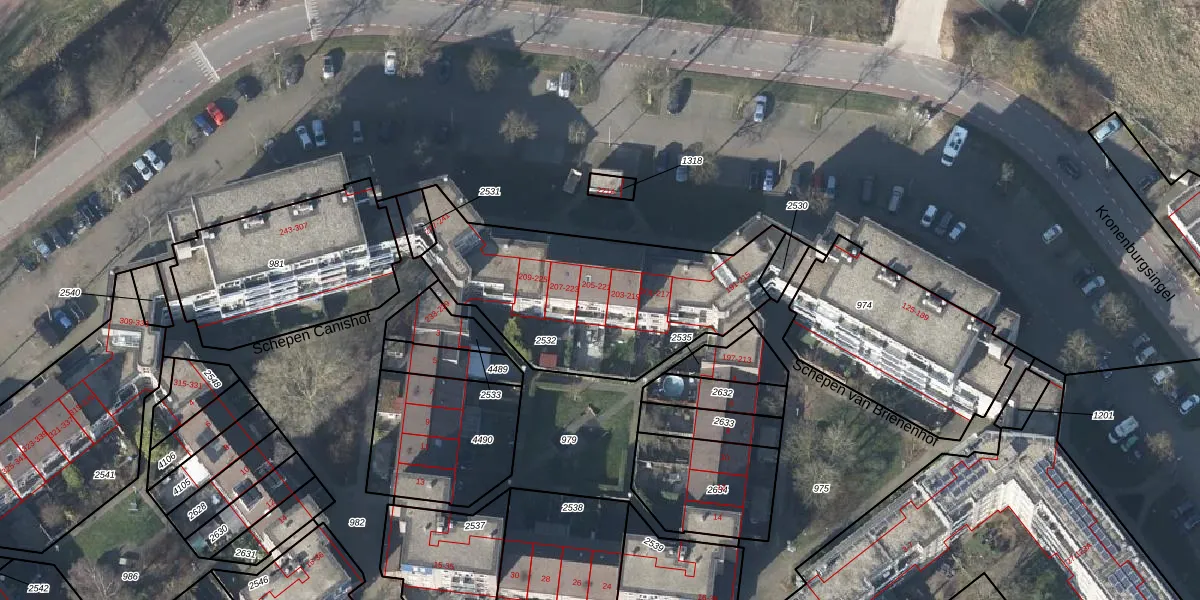 Kronenburgsingel 205 is gelegen op kadastraal perceel AHM01W2532. Deze kadastrale aanduiding is uniek en wordt gebruikt door het Kadaster om eigendomsrechten en andere zakelijke rechten vast te leggen. Het perceel maakt onderdeel uit van de kadastrale gemeente Arnhem.