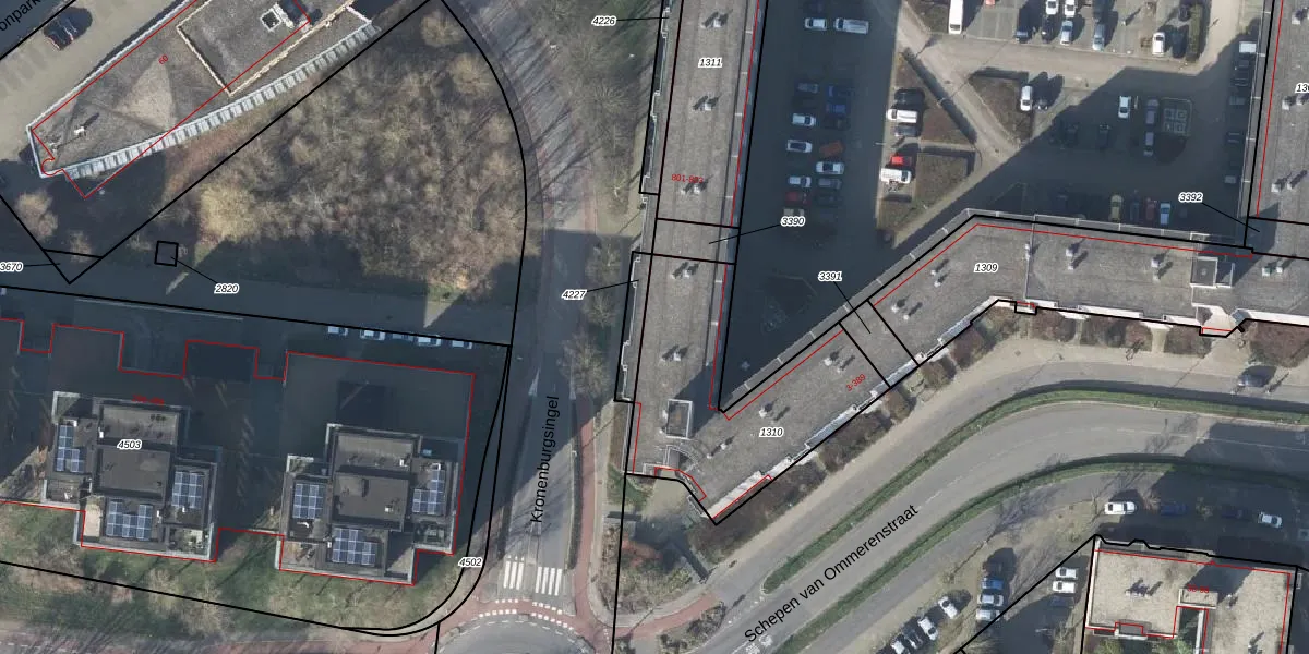 Het perceel waarop Kronenburgsingel 823 staat heeft een oppervlakte van 826 m². Dit is een groot perceel. De perceeloppervlakte wordt geregistreerd door het Kadaster. Gedetailleerde informatie over de maten van dit perceel kunt u vinden in het rapport Kadastrale kaart met maatvoering van Kronenburgsingel 823.