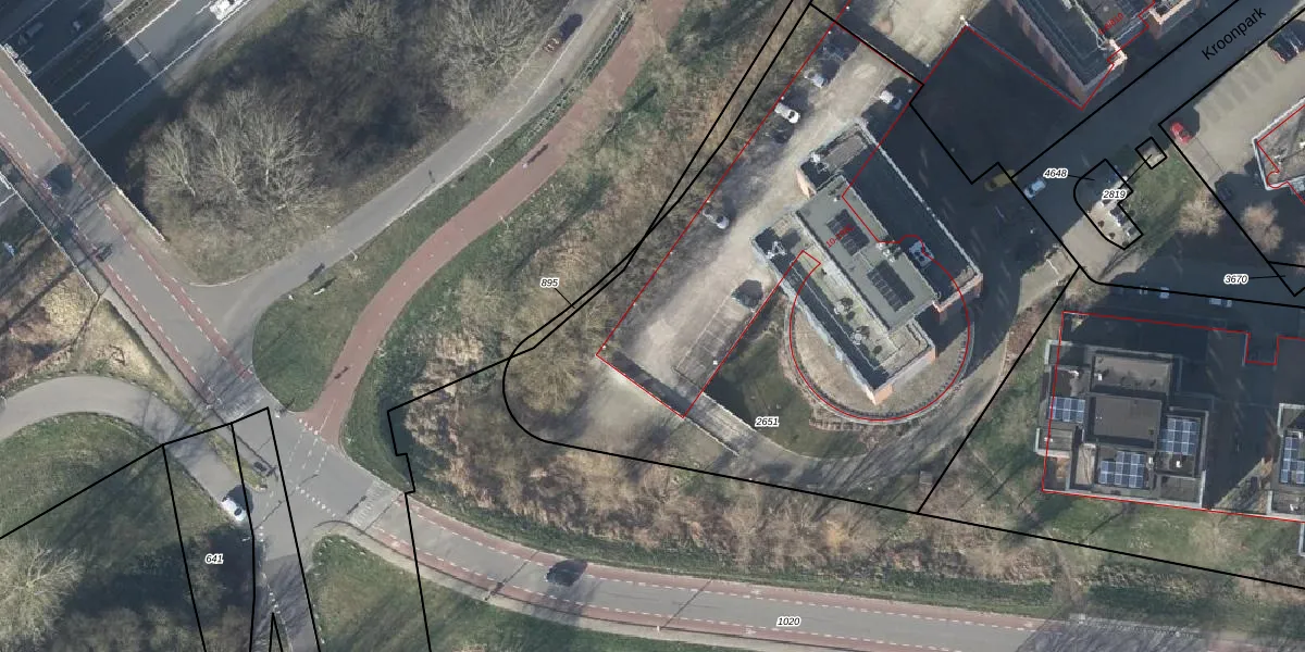 Kroonpark 108 is gelegen op kadastraal perceel AHM01W2651. Deze kadastrale aanduiding is uniek en wordt gebruikt door het Kadaster om eigendomsrechten en andere zakelijke rechten vast te leggen. Het perceel maakt onderdeel uit van de kadastrale gemeente Arnhem.