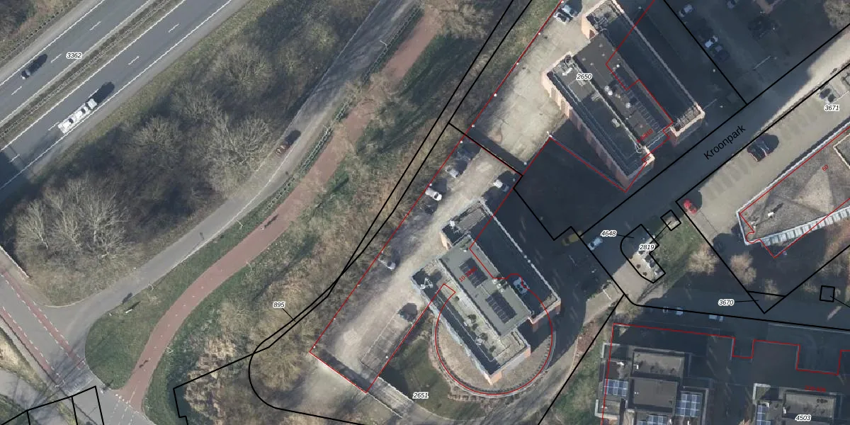 Het perceel waarop Kroonpark 120 staat heeft een oppervlakte van 3730 m². Dit is een zeer groot perceel. De perceeloppervlakte wordt geregistreerd door het Kadaster. Gedetailleerde informatie over de maten van dit perceel kunt u vinden in het rapport Kadastrale kaart met maatvoering van Kroonpark 120.