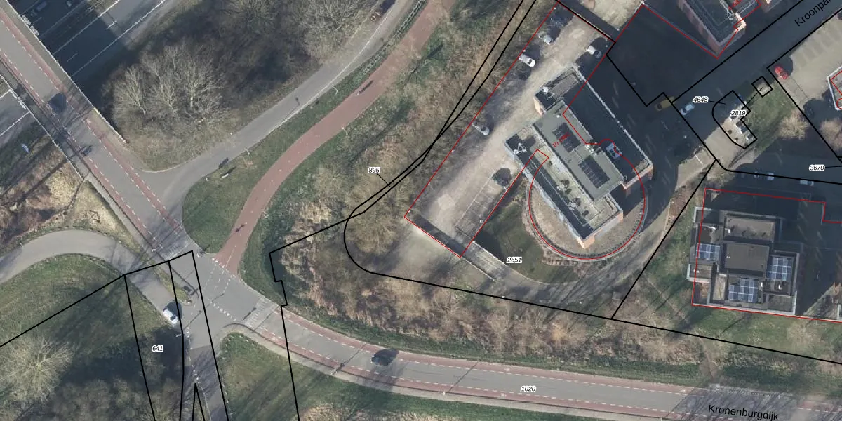 Het perceel waarop Kroonpark 126 staat heeft een oppervlakte van 3730 m². Dit is een zeer groot perceel. De perceeloppervlakte wordt geregistreerd door het Kadaster. Gedetailleerde informatie over de maten van dit perceel kunt u vinden in het rapport Kadastrale kaart met maatvoering van Kroonpark 126.