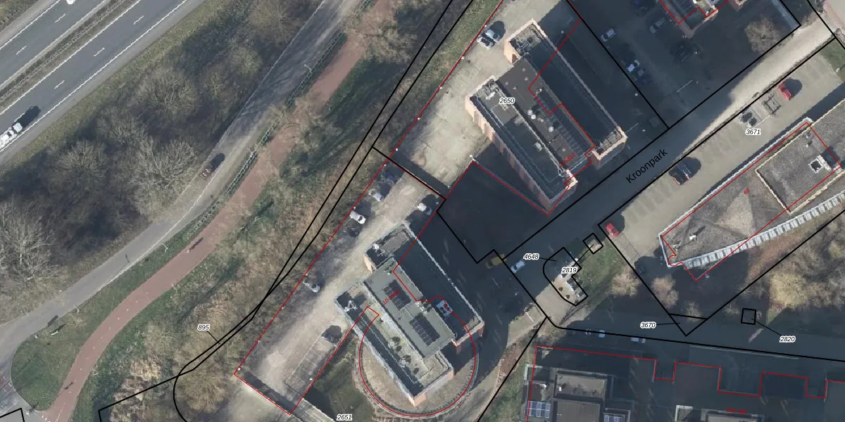 Het perceel waarop Kroonpark 164 staat heeft een oppervlakte van 3730 m². Dit is een zeer groot perceel. De perceeloppervlakte wordt geregistreerd door het Kadaster. Gedetailleerde informatie over de maten van dit perceel kunt u vinden in het rapport Kadastrale kaart met maatvoering van Kroonpark 164.