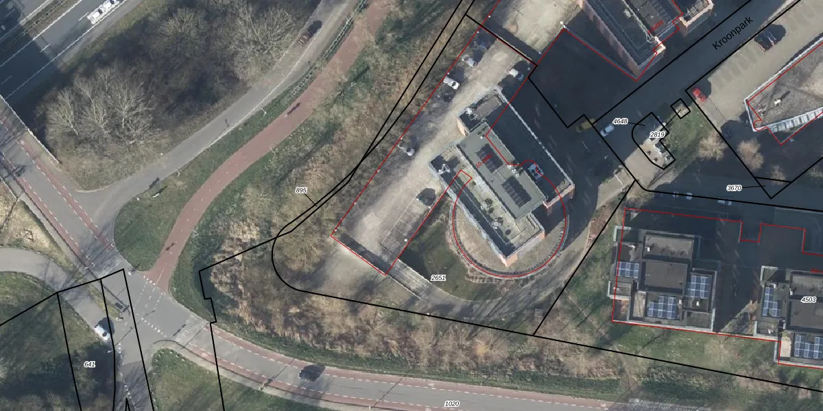 Het perceel waarop Kroonpark 170 staat heeft een oppervlakte van 3730 m². Dit is een zeer groot perceel. De perceeloppervlakte wordt geregistreerd door het Kadaster. Gedetailleerde informatie over de maten van dit perceel kunt u vinden in het rapport Kadastrale kaart met maatvoering van Kroonpark 170.