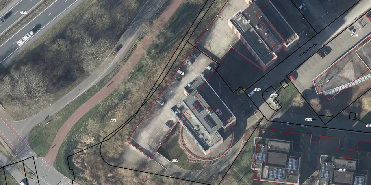 Het perceel waarop Kroonpark 178 staat heeft een oppervlakte van 3730 m². Dit is een zeer groot perceel. De perceeloppervlakte wordt geregistreerd door het Kadaster. Gedetailleerde informatie over de maten van dit perceel kunt u vinden in het rapport Kadastrale kaart met maatvoering van Kroonpark 178.