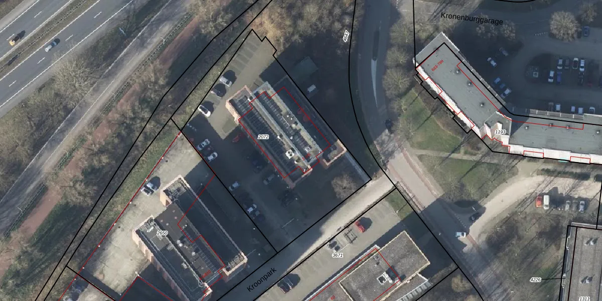 Het perceel waarop Kroonpark 2-2 staat heeft een oppervlakte van 2295 m². Dit is een zeer groot perceel. De perceeloppervlakte wordt geregistreerd door het Kadaster. Gedetailleerde informatie over de maten van dit perceel kunt u vinden in het rapport Kadastrale kaart met maatvoering van Kroonpark 2-2.