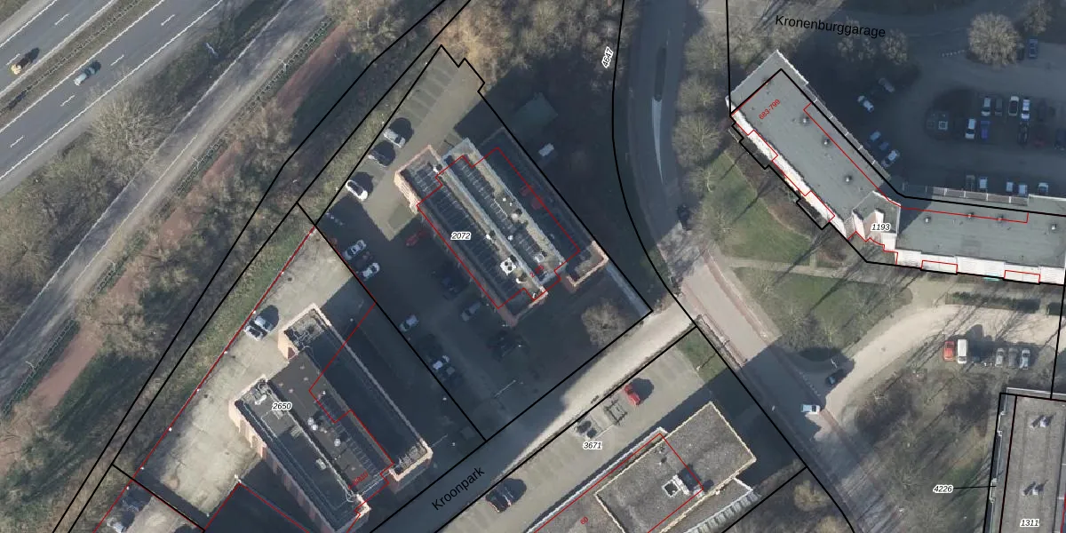 Het perceel waarop Kroonpark 2-1 staat heeft een oppervlakte van 2295 m². Dit is een zeer groot perceel. De perceeloppervlakte wordt geregistreerd door het Kadaster. Gedetailleerde informatie over de maten van dit perceel kunt u vinden in het rapport Kadastrale kaart met maatvoering van Kroonpark 2-1.