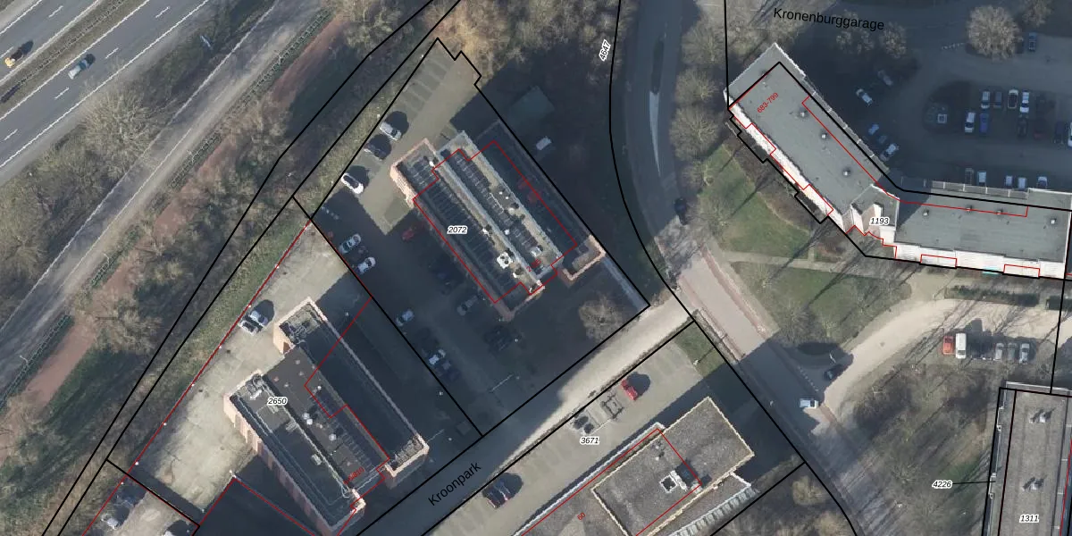 Het perceel waarop Kroonpark 2 staat heeft een oppervlakte van 2295 m². Dit is een zeer groot perceel. De perceeloppervlakte wordt geregistreerd door het Kadaster. Gedetailleerde informatie over de maten van dit perceel kunt u vinden in het rapport Kadastrale kaart met maatvoering van Kroonpark 2.