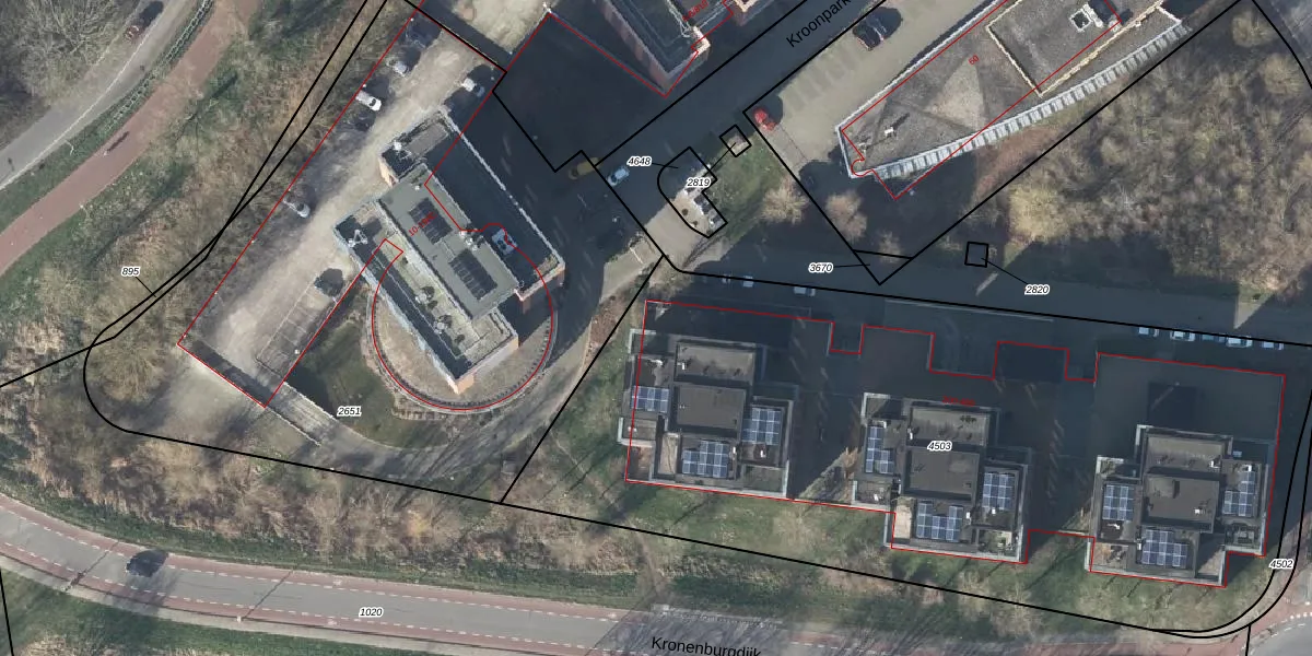 Het perceel waarop Kroonpark 218 staat heeft een oppervlakte van 4695 m². Dit is een zeer groot perceel. De perceeloppervlakte wordt geregistreerd door het Kadaster. Gedetailleerde informatie over de maten van dit perceel kunt u vinden in het rapport Kadastrale kaart met maatvoering van Kroonpark 218.