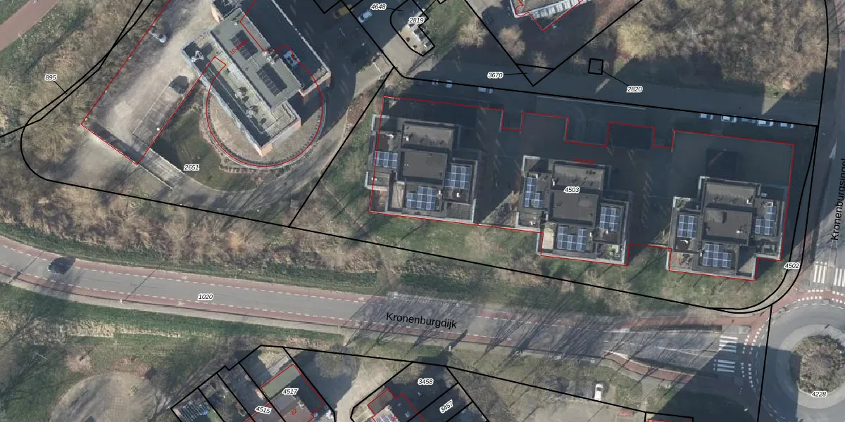 Het perceel waarop Kroonpark 242 staat heeft een oppervlakte van 4695 m². Dit is een zeer groot perceel. De perceeloppervlakte wordt geregistreerd door het Kadaster. Gedetailleerde informatie over de maten van dit perceel kunt u vinden in het rapport Kadastrale kaart met maatvoering van Kroonpark 242.