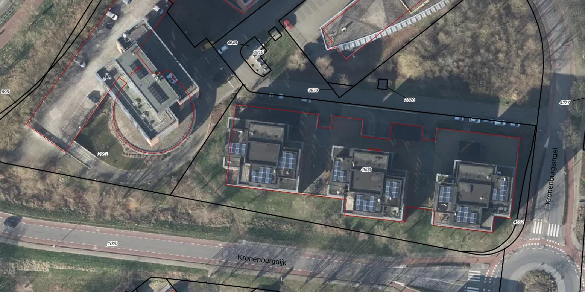 Het perceel waarop Kroonpark 288 staat heeft een oppervlakte van 4695 m². Dit is een zeer groot perceel. De perceeloppervlakte wordt geregistreerd door het Kadaster. Gedetailleerde informatie over de maten van dit perceel kunt u vinden in het rapport Kadastrale kaart met maatvoering van Kroonpark 288.