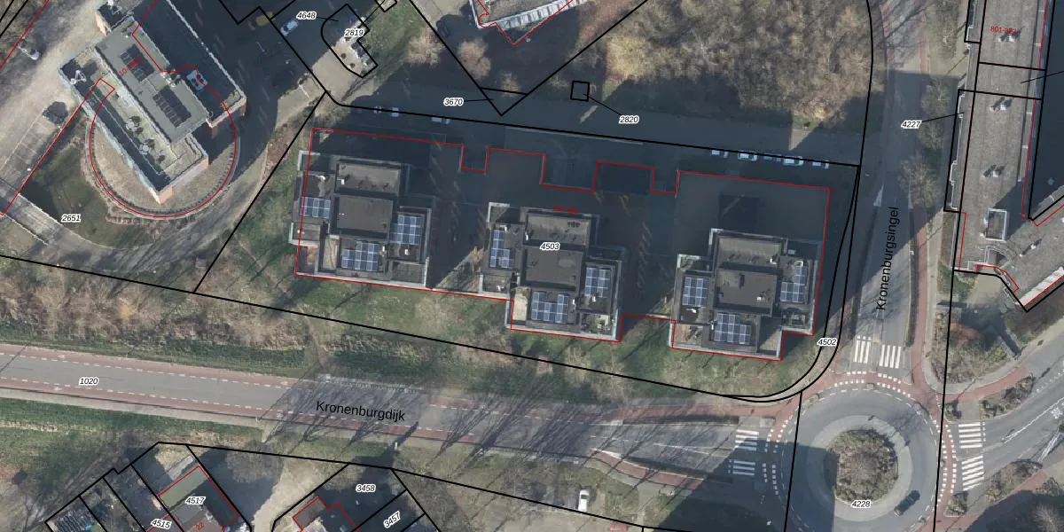 Kroonpark 330 is gelegen op kadastraal perceel AHM01W4503. Deze kadastrale aanduiding is uniek en wordt gebruikt door het Kadaster om eigendomsrechten en andere zakelijke rechten vast te leggen. Het perceel maakt onderdeel uit van de kadastrale gemeente Arnhem.