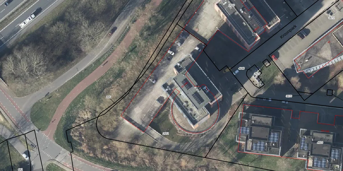 Het perceel waarop Kroonpark 36 staat heeft een oppervlakte van 3730 m². Dit is een zeer groot perceel. De perceeloppervlakte wordt geregistreerd door het Kadaster. Gedetailleerde informatie over de maten van dit perceel kunt u vinden in het rapport Kadastrale kaart met maatvoering van Kroonpark 36.