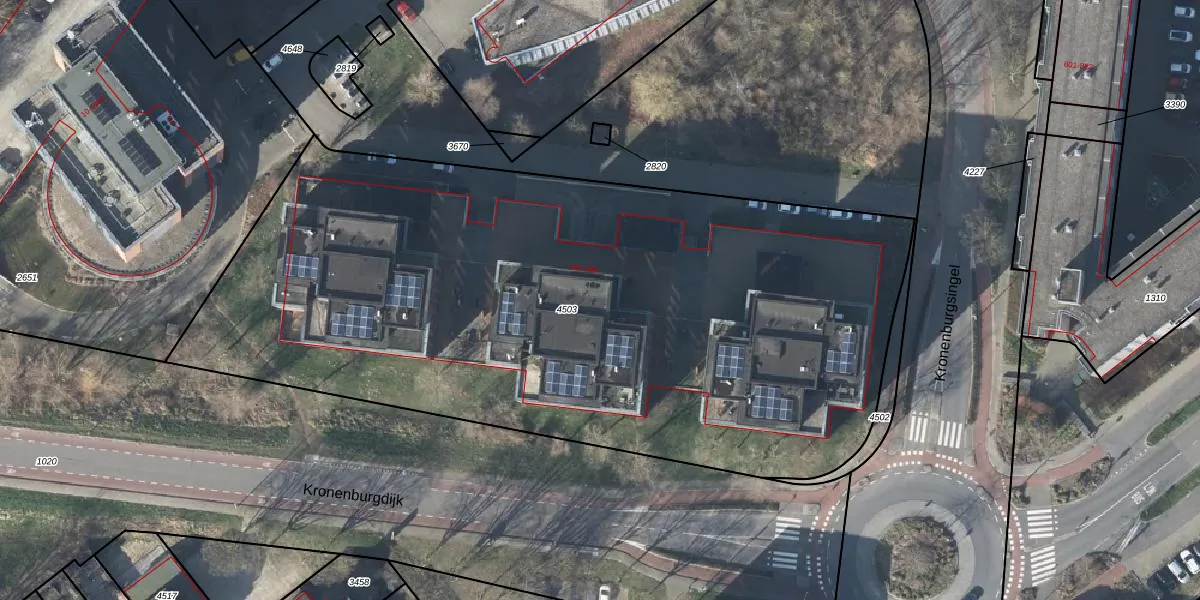 Het perceel waarop Kroonpark 376 staat heeft een oppervlakte van 4695 m². Dit is een zeer groot perceel. De perceeloppervlakte wordt geregistreerd door het Kadaster. Gedetailleerde informatie over de maten van dit perceel kunt u vinden in het rapport Kadastrale kaart met maatvoering van Kroonpark 376.
