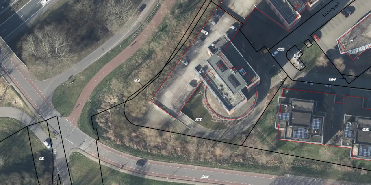 Het perceel waarop Kroonpark 50 staat heeft een oppervlakte van 3730 m². Dit is een zeer groot perceel. De perceeloppervlakte wordt geregistreerd door het Kadaster. Gedetailleerde informatie over de maten van dit perceel kunt u vinden in het rapport Kadastrale kaart met maatvoering van Kroonpark 50.