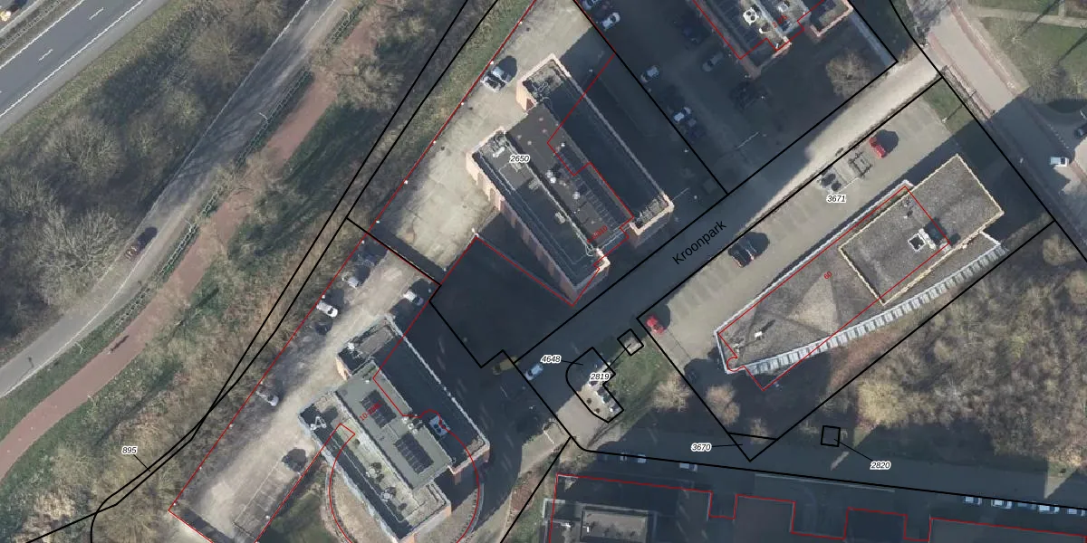 Het perceel waarop Kroonpark 6-100 staat heeft een oppervlakte van 2715 m². Dit is een zeer groot perceel. De perceeloppervlakte wordt geregistreerd door het Kadaster. Gedetailleerde informatie over de maten van dit perceel kunt u vinden in het rapport Kadastrale kaart met maatvoering van Kroonpark 6-100.