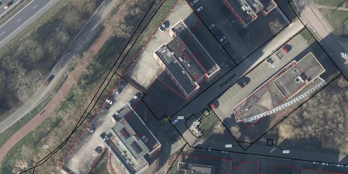 Het perceel waarop Kroonpark 6-200 staat heeft een oppervlakte van 2715 m². Dit is een zeer groot perceel. De perceeloppervlakte wordt geregistreerd door het Kadaster. Gedetailleerde informatie over de maten van dit perceel kunt u vinden in het rapport Kadastrale kaart met maatvoering van Kroonpark 6-200.