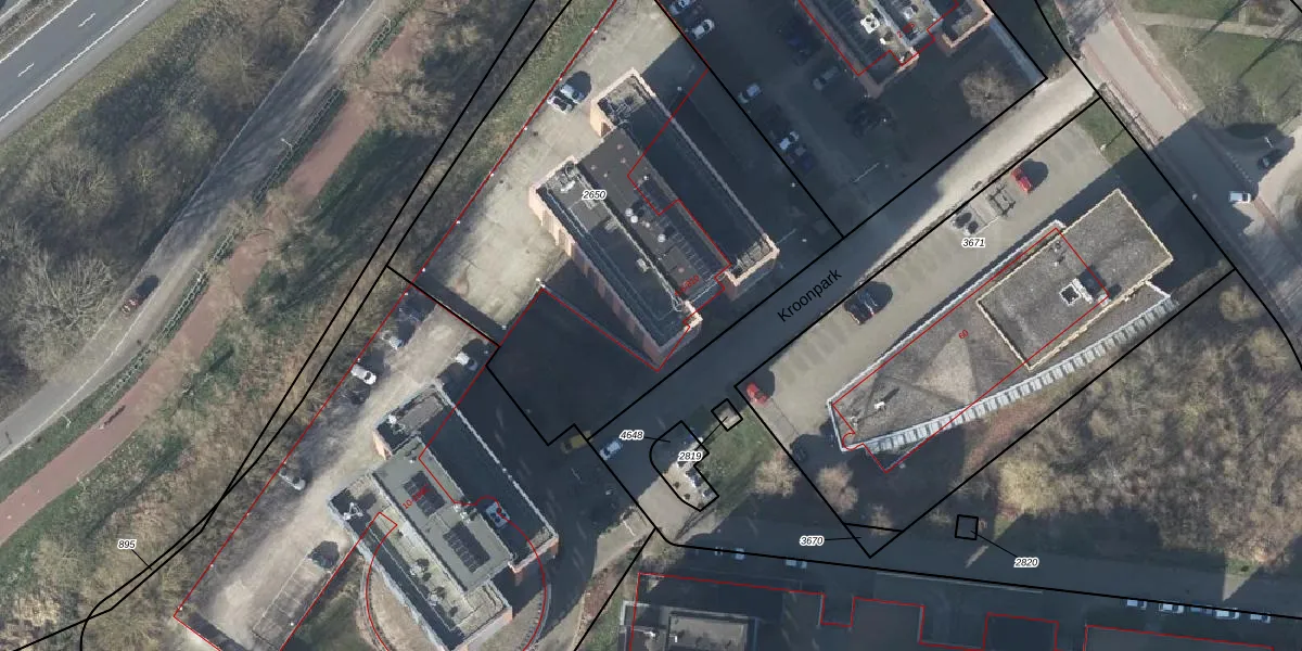 Het perceel waarop Kroonpark 6-101 staat heeft een oppervlakte van 2715 m². Dit is een zeer groot perceel. De perceeloppervlakte wordt geregistreerd door het Kadaster. Gedetailleerde informatie over de maten van dit perceel kunt u vinden in het rapport Kadastrale kaart met maatvoering van Kroonpark 6-101.