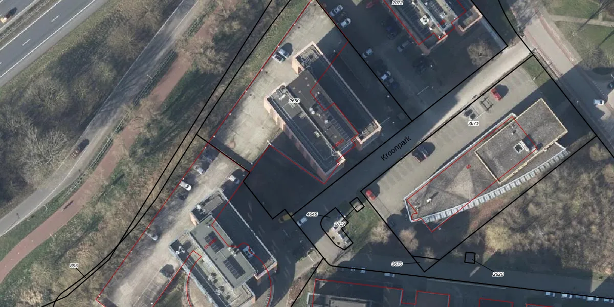 Het perceel waarop Kroonpark 6-301 staat heeft een oppervlakte van 2715 m². Dit is een zeer groot perceel. De perceeloppervlakte wordt geregistreerd door het Kadaster. Gedetailleerde informatie over de maten van dit perceel kunt u vinden in het rapport Kadastrale kaart met maatvoering van Kroonpark 6-301.