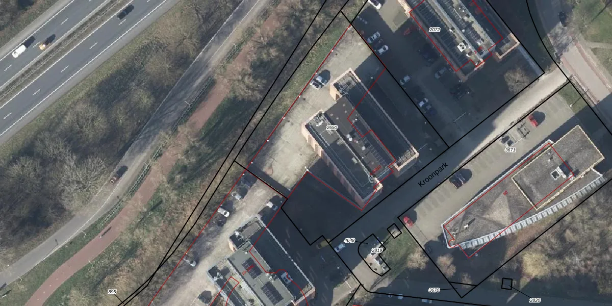 Het perceel waarop Kroonpark 6-801 staat heeft een oppervlakte van 2715 m². Dit is een zeer groot perceel. De perceeloppervlakte wordt geregistreerd door het Kadaster. Gedetailleerde informatie over de maten van dit perceel kunt u vinden in het rapport Kadastrale kaart met maatvoering van Kroonpark 6-801.