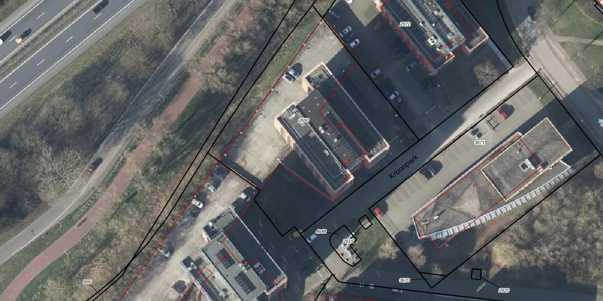 Het perceel waarop Kroonpark 6-502 staat heeft een oppervlakte van 2715 m². Dit is een zeer groot perceel. De perceeloppervlakte wordt geregistreerd door het Kadaster. Gedetailleerde informatie over de maten van dit perceel kunt u vinden in het rapport Kadastrale kaart met maatvoering van Kroonpark 6-502.