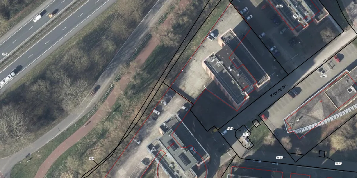 Het perceel waarop Kroonpark 6-504 staat heeft een oppervlakte van 2715 m². Dit is een zeer groot perceel. De perceeloppervlakte wordt geregistreerd door het Kadaster. Gedetailleerde informatie over de maten van dit perceel kunt u vinden in het rapport Kadastrale kaart met maatvoering van Kroonpark 6-504.