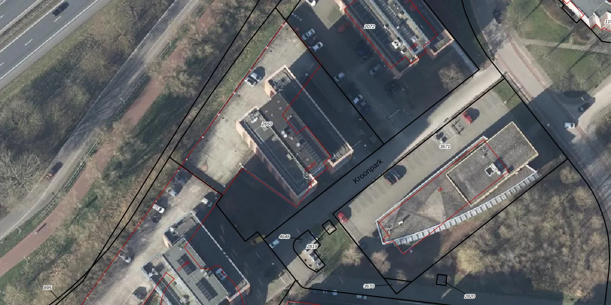 Het perceel waarop Kroonpark 6-206 staat heeft een oppervlakte van 2715 m². Dit is een zeer groot perceel. De perceeloppervlakte wordt geregistreerd door het Kadaster. Gedetailleerde informatie over de maten van dit perceel kunt u vinden in het rapport Kadastrale kaart met maatvoering van Kroonpark 6-206.