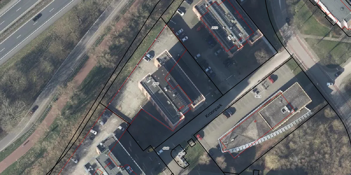 Het perceel waarop Kroonpark 6-408 staat heeft een oppervlakte van 2715 m². Dit is een zeer groot perceel. De perceeloppervlakte wordt geregistreerd door het Kadaster. Gedetailleerde informatie over de maten van dit perceel kunt u vinden in het rapport Kadastrale kaart met maatvoering van Kroonpark 6-408.