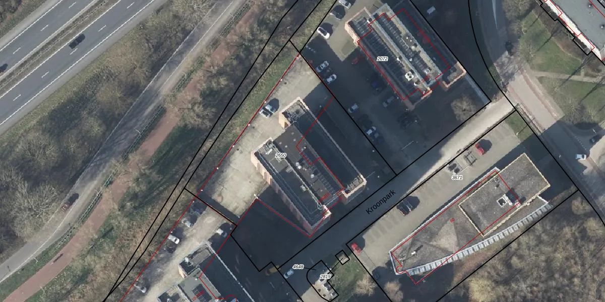 Het perceel waarop Kroonpark 6-608 staat heeft een oppervlakte van 2715 m². Dit is een zeer groot perceel. De perceeloppervlakte wordt geregistreerd door het Kadaster. Gedetailleerde informatie over de maten van dit perceel kunt u vinden in het rapport Kadastrale kaart met maatvoering van Kroonpark 6-608.