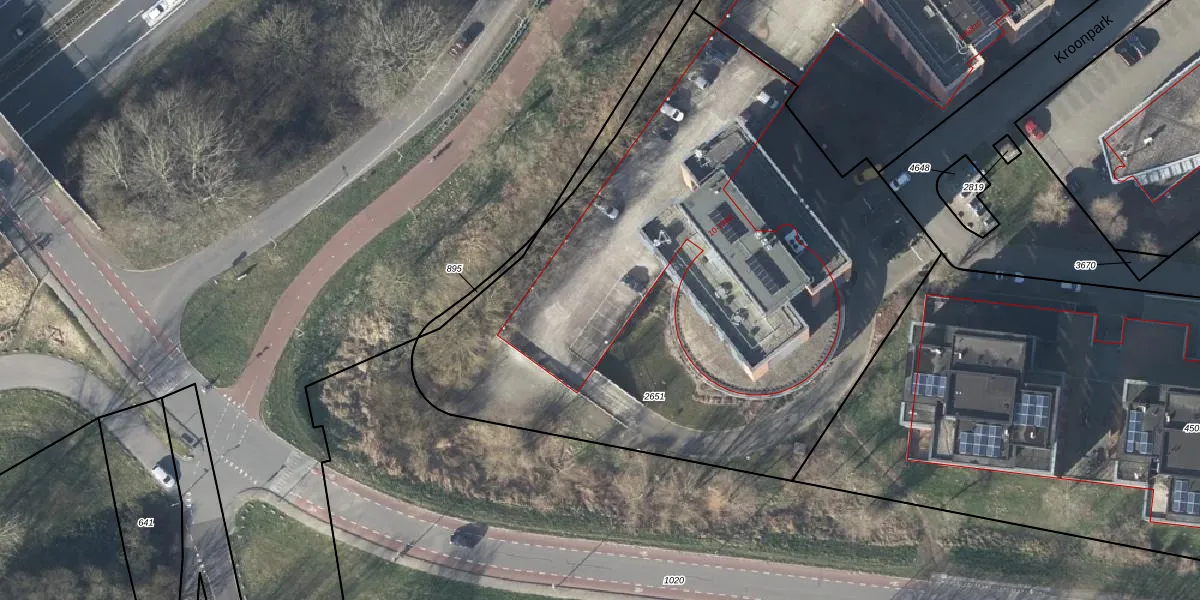 Het perceel waarop Kroonpark 70 staat heeft een oppervlakte van 3730 m². Dit is een zeer groot perceel. De perceeloppervlakte wordt geregistreerd door het Kadaster. Gedetailleerde informatie over de maten van dit perceel kunt u vinden in het rapport Kadastrale kaart met maatvoering van Kroonpark 70.