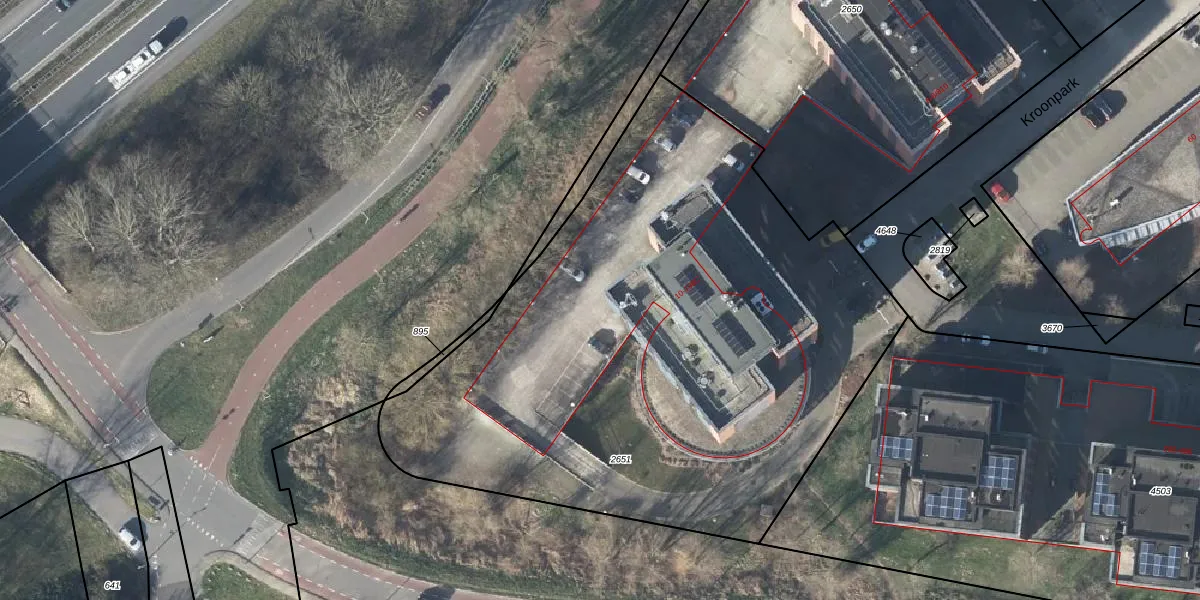 Het perceel waarop Kroonpark 74 staat heeft een oppervlakte van 3730 m². Dit is een zeer groot perceel. De perceeloppervlakte wordt geregistreerd door het Kadaster. Gedetailleerde informatie over de maten van dit perceel kunt u vinden in het rapport Kadastrale kaart met maatvoering van Kroonpark 74.
