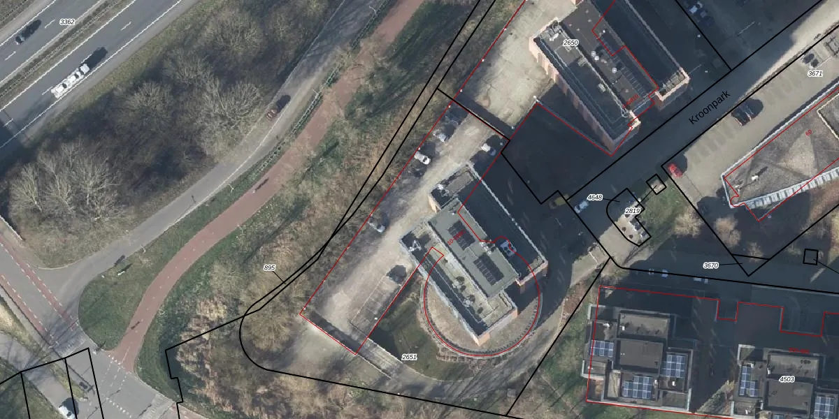 Het perceel waarop Kroonpark 78 staat heeft een oppervlakte van 3730 m². Dit is een zeer groot perceel. De perceeloppervlakte wordt geregistreerd door het Kadaster. Gedetailleerde informatie over de maten van dit perceel kunt u vinden in het rapport Kadastrale kaart met maatvoering van Kroonpark 78.