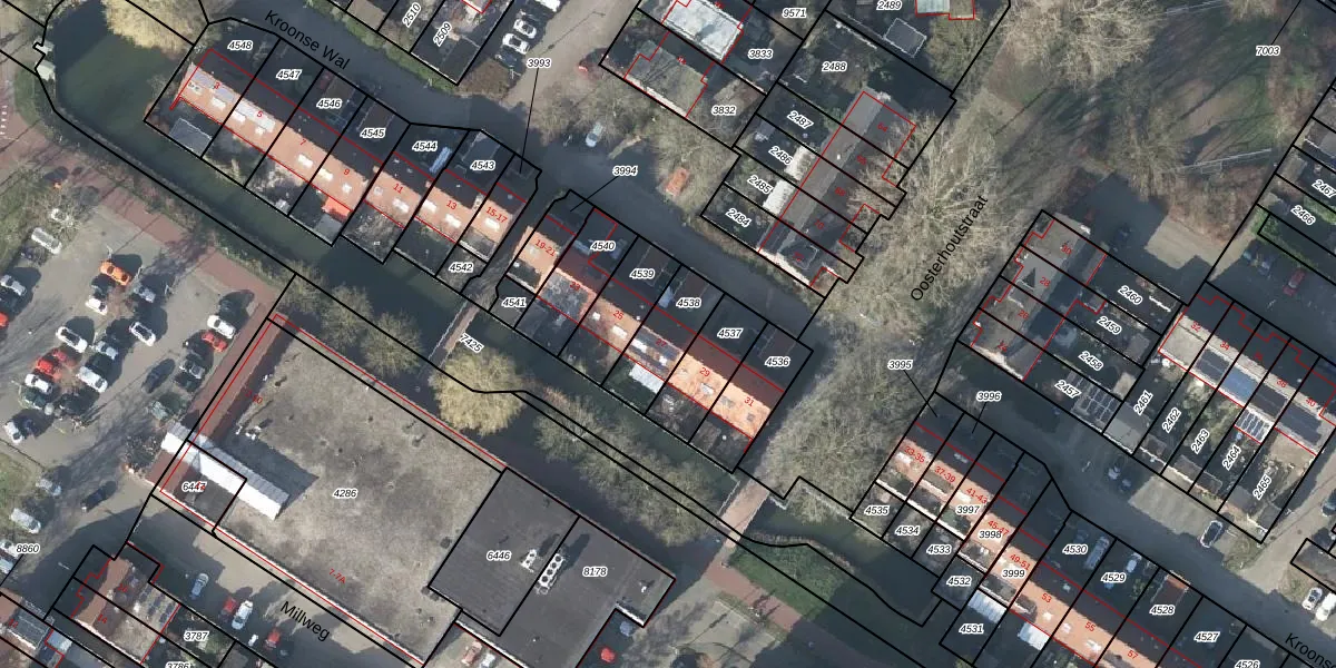 Het perceel waarop Kroonse Wal 27 staat heeft een oppervlakte van 171 m². Dit is een middelgroot perceel. De perceeloppervlakte wordt geregistreerd door het Kadaster. Gedetailleerde informatie over de maten van dit perceel kunt u vinden in het rapport Kadastrale kaart met maatvoering van Kroonse Wal 27.
