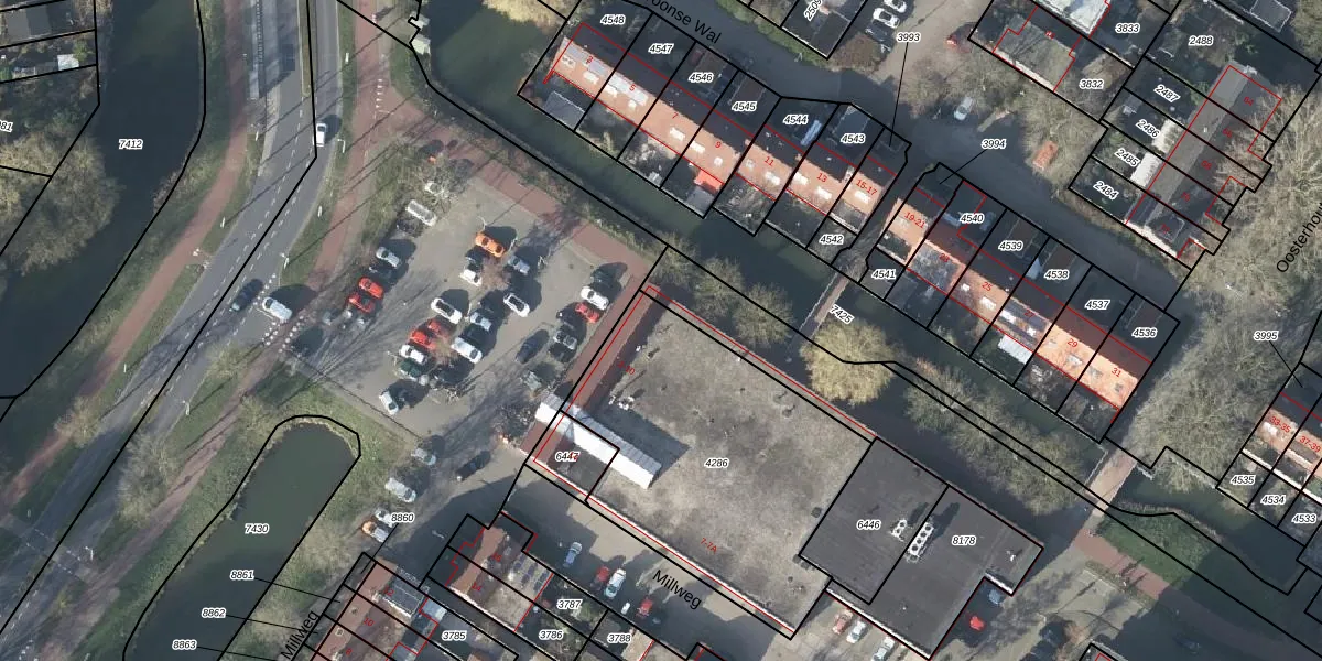 Het adres is gelegen op perceel 4286 in de sectie AC en de kadastrale gemeente Arnhem. De kadastrale aanduiding is aldus AHM03-AC-4286. De gemiddelde perceeloppervlakte in de kadastrale gemeente Arnhem is 651,57 m². Dit perceel is met zijn 1294 m² dus groter dan gemiddeld. Het kleinste perceel in de kadastrale gemeente is 0 m² groot. De grootste perceeloppervlakte is 14,2 ha. Op het perceel zijn 5 adressen aanwezig. De huidige grenzen van het perceel zijn digitaal in de Basisregistratie Kadaster (BRK) geregistreerd op 02-10-2008.