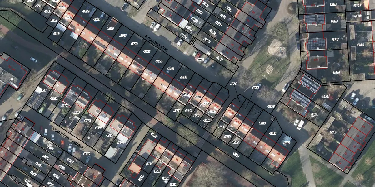 Het perceel waarop Kroonse Wal 73 staat heeft een oppervlakte van 96 m². Dit is een klein perceel. De perceeloppervlakte wordt geregistreerd door het Kadaster. Gedetailleerde informatie over de maten van dit perceel kunt u vinden in het rapport Kadastrale kaart met maatvoering van Kroonse Wal 73.