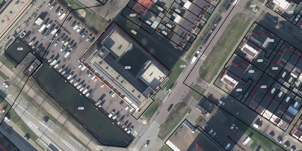 Het perceel waarop Kruidenplein 36 staat heeft een oppervlakte van 1840 m². Dit is een zeer groot perceel. De perceeloppervlakte wordt geregistreerd door het Kadaster. Gedetailleerde informatie over de maten van dit perceel kunt u vinden in het rapport Kadastrale kaart met maatvoering van Kruidenplein 36.