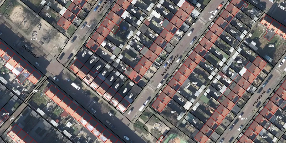 Het perceel waarop Kruizemuntstraat 20 staat heeft een oppervlakte van 952 m². Dit is een groot perceel. De perceeloppervlakte wordt geregistreerd door het Kadaster. Gedetailleerde informatie over de maten van dit perceel kunt u vinden in het rapport Kadastrale kaart met maatvoering van Kruizemuntstraat 20.