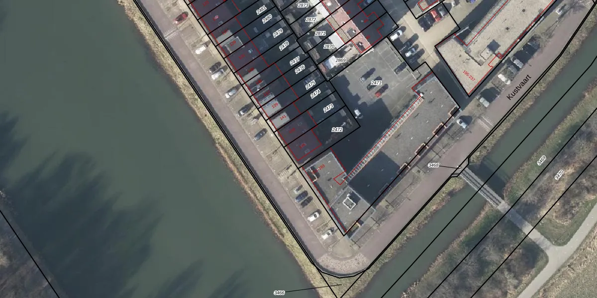 Kustvaart 145 is gelegen op kadastraal perceel AHM05AF2472. Deze kadastrale aanduiding is uniek en wordt gebruikt door het Kadaster om eigendomsrechten en andere zakelijke rechten vast te leggen. Het perceel maakt onderdeel uit van de kadastrale gemeente Arnhem.