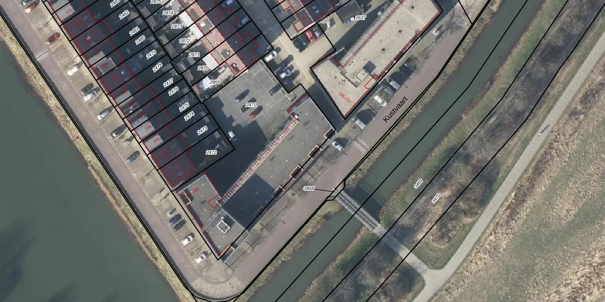 Het perceel waarop Kustvaart 159 staat heeft een oppervlakte van 1653 m². Dit is een zeer groot perceel. De perceeloppervlakte wordt geregistreerd door het Kadaster. Gedetailleerde informatie over de maten van dit perceel kunt u vinden in het rapport Kadastrale kaart met maatvoering van Kustvaart 159.